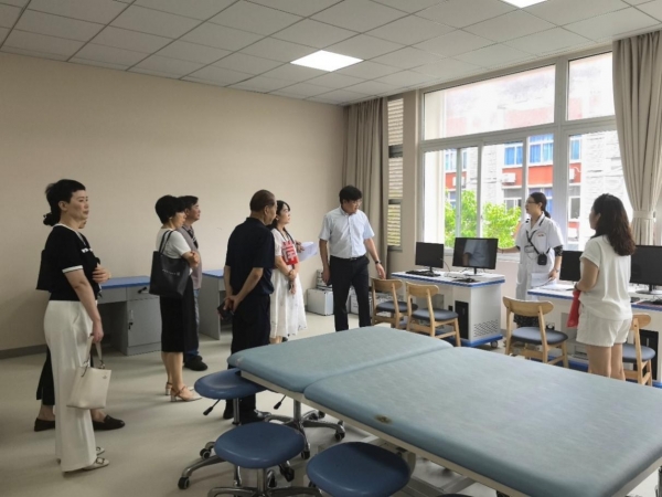 专家组首先对康复治疗技术专业的校内实训场所进行了全面细致的实地查验。实习实训科赵凤老师向专家详细介绍了各实训室的建设与运行情况,包括仪器设备配置、实训项目开展以及功能区域规划等内容。专家们依次走访了物理治疗、作业治疗、言语治疗、康复评定等标准化实训室,现场观摩部分设备的操作演示,并就设备技术参数、使用频率、与临床实践衔接等关键问题,与专任教师进行了深入交流。